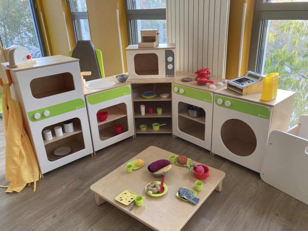 La structure offre un grand espace pour 13 enfants. Votre enfant trouvera différents espaces pour s’amuser : espace de mimétisme, de motricité et même de cocooning.