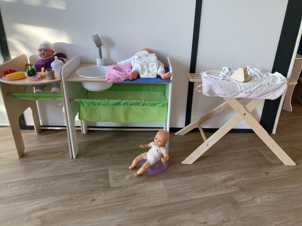 Nous y accueillons en moyenne treize enfants de 10 semaines à 3 ans, dans un lumineux local de plain-pied de 180 m2, avec vue sur la verdure.