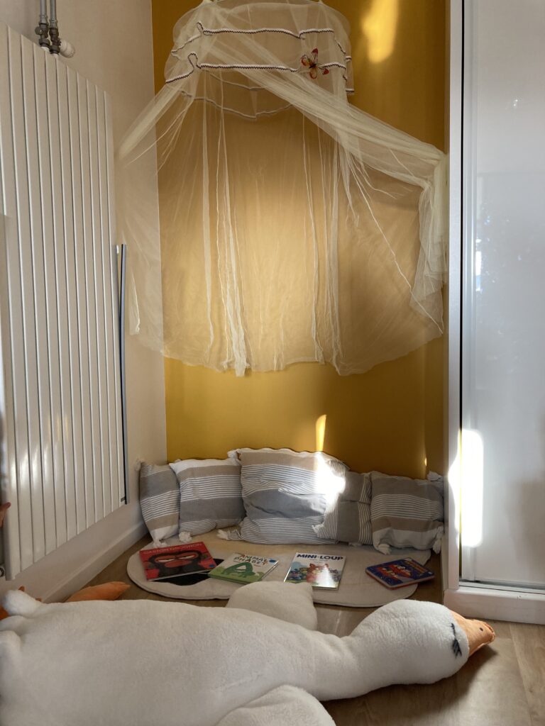 Nous y accueillons 12 enfants dans un local de plain-pied de 170 m2, avec une grande hauteur sous plafond.